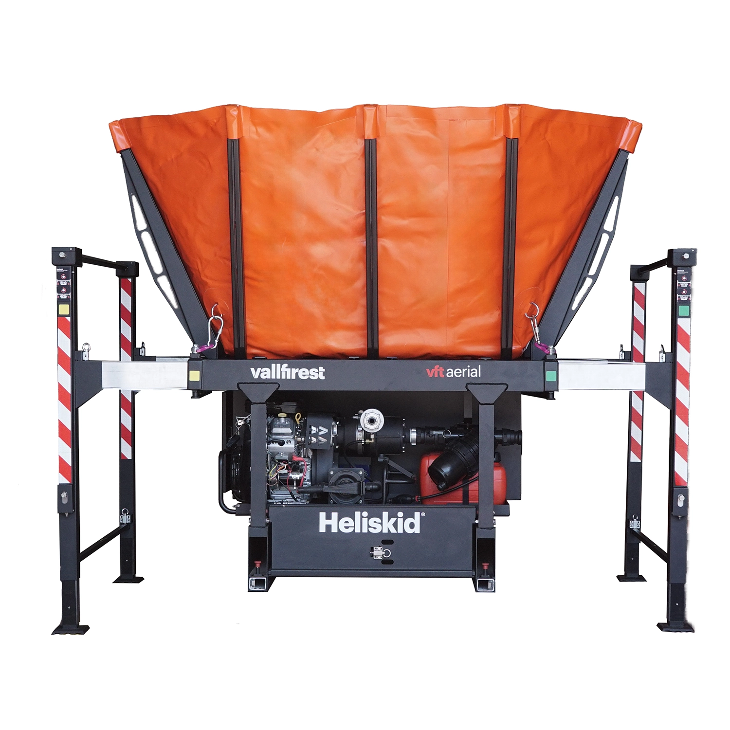 Heliskid is a compact and versatile skid unit for light vehicles designed for easier direct attack operations with a water line in remote areas. A device that can be moved on the ground or in the air, it has 6 times more water capacity than a traditional skid unit and a high-performance motor pump.