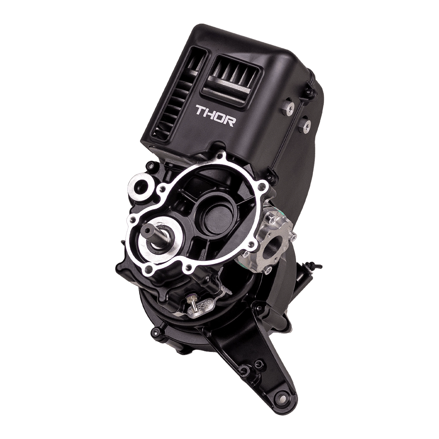Compact 2-stroke engine with manual recoil start, electronic ignition and overspeed shutdown. Equipped with LED indicators and integrated tachometer for real-time feedback.